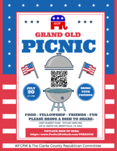 Join us at the Chet Holbert Park at the Rotary Shelter. 225 Al Smith Circle, Berryville, VA